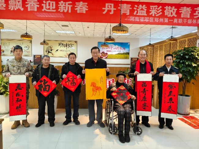 河南讯(李全胜 通讯员 柳国增 张百强)报道:2月6日上午,河南省军区郑州第一离职干部休养所内暖意融融、笑语盈盈,“翰墨飘香迎新春 丹青溢彩敬耆英”新春送春联书法进军营活动在此热闹启幕。离休老干部及家属、该所工作人员与河南省文化和旅游厅原副厅长曲径,中国书画文促会副秘书长、河南省黄淮书画院院长冯少斌,河南省轩辕文化书画院院长梁百庆,中国书法家协会会员、黄河科技学院特聘书法教授耿岐超、中原银行郑州第八大街支行代表等书法家欢聚一堂,在笔墨丹青间感受浓浓的年味儿与关怀。