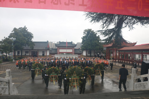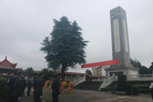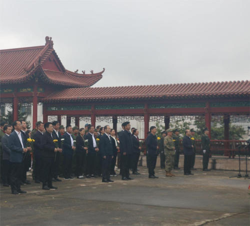 秋日的大别山区,天高云飞,松柏凝翠。上午9时30分,公祭活动在庄严的氛围中正式开始。人武部机关人员军容严整、姿态端正,与全县各界代表一道,在烈士纪念碑前的广场整齐列队。伴随着雄浑高亢的《义勇军进行曲》,全场齐声高唱中华人民共和国国歌。国歌唱毕,全场肃立,向英勇献身的烈士们默哀,表达深切怀念和崇高敬意。