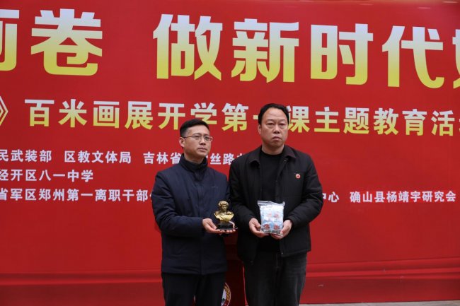 戴红燕在致辞中表示,杨靖宇将军是矗立在中华大地的不朽丰碑,百米画卷以丹青为媒,让英雄足迹走进少年心田。她勉励八一学子以英雄为镜,照亮初心,以信仰为帆,逐梦远航。