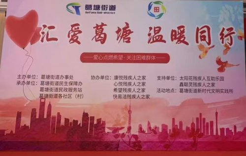 江苏讯(尹良根 通讯员 达苏文 张致佳)南京报道:为大力弘扬中华民族扶残助残的优良传统,积极营造理解、尊重、关心、帮助残疾人的浓厚社会氛围,为残疾人朋友搭建一个展示自身才能、促进社会融合的有效平台,葛塘街道民生保障办联合街道民政服务站,精心策划并组织开展了“汇爱葛塘,温暖同行”系列助残活动。