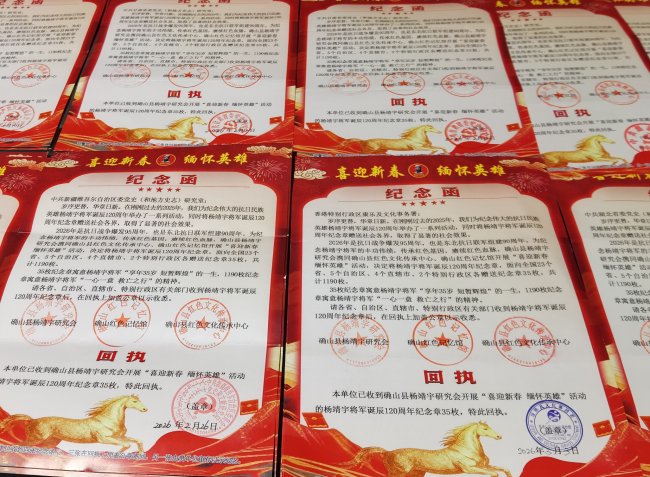 河南讯(李全胜 通讯员 李鹏飞)报道:3月21日,随着香港康乐及文化事务署回执公函顺利抵达,由河南省确山县杨靖宇研究会、确山县红色文化传承中心、确山红色记忆馆联合主办的“喜迎新春 缅怀英雄”主题纪念活动圆满落幕。小小纪念章跨越千里,将抗日民族英雄杨靖宇的赤胆忠心与家国情怀,传递到祖国大江南北。